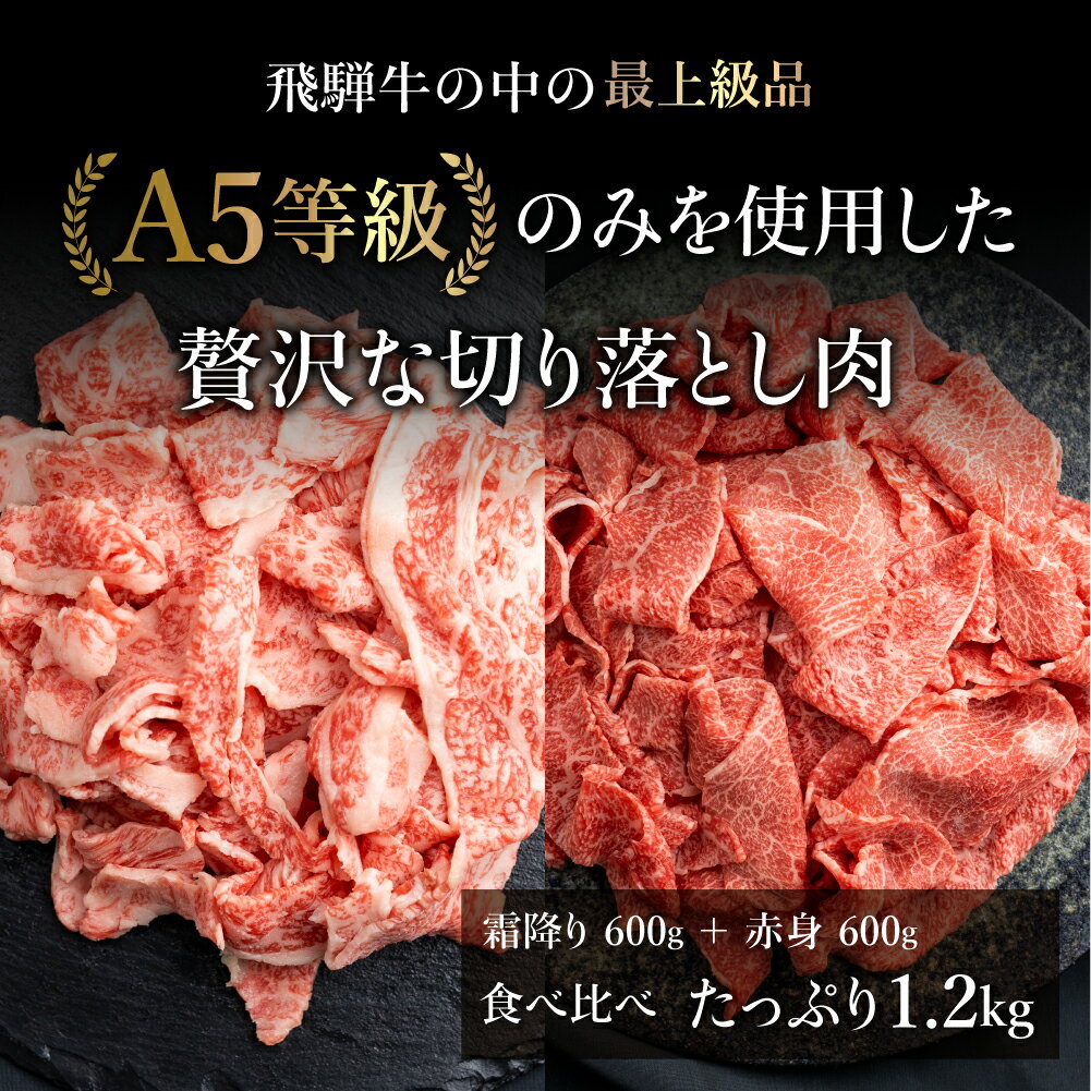 【ふるさと納税】肉 牛肉 A5等級 飛騨牛 霜降(600g)・赤身(600g) 切り落とし 食べ比べ 1.2kg 牛 切落し ブランド牛 雌牛 5等級 A5ランク 薄切り 熨斗 のし 天狗総本店 飛騨高山 TR4176 お楽しみ 発送時期が選べる 日付指定不可・・・