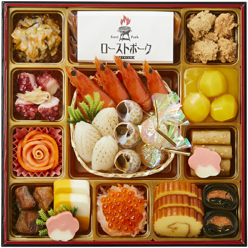 保存料不使用の安全・安心のおせち料理56品です。盛り付け済で手間要らず、しかも冷蔵での配送のため、解凍のわずらわしさがありません。