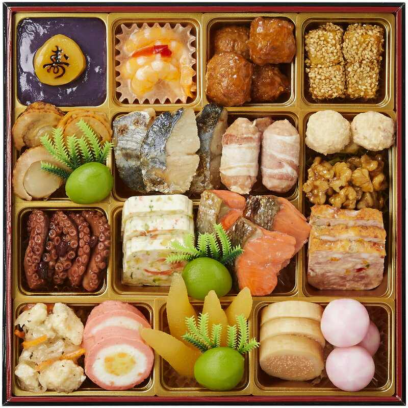 商品説明 名称 【ふるさと納税】千賀屋謹製 2024年 迎春おせち料理「おもてなし」和風三段重 4~5人前 全56品 冷蔵 内容量 8.5寸 三段重(一段約25.7cm×25.7cm×5.3cm) 全56品(4~5人前) [同梱物] お品書き・風呂敷・祝い箸5膳 [重箱の材質] 紙 ◆お品書き 【一の重】帆刺黄金漬/ローストポーク/魚の子旨煮/蛸生姜/ローズサーモン/祝い海老/烏賊松笠白焼/ばい貝旨煮/柚子オーロラ/栗金団/酢牛蒡/梅真丈/たら旨煮/錦玉子/紅白なます/いくら醤油漬/伊達巻/紅鮭昆布巻 【二の重】紫芋金団/海老マリネ/味付け肉団子/ごまさつま/照焼帆立/若桃甘露煮/鰆西京焼/ベーコンチーズ/柚子鶏つくね/くるみ煮/ミートローフ/蛸小倉煮/サーモンの彩りテリーヌ/紅鮭白醤油焼/白身魚のエスカベッシュ/あかね真丈/数の子鼈甲漬/烏賊魚卵射込/手毬餅まんじゅう 【三の重】田作り/白花豆/湯葉旨煮/新緑ふくさ/ままかり酢漬け柚子風味/烏賊黄金焼/紅白結び餅/鶏照焼/烏賊柚子ジュレ和え/松前漬/紅鮭の石狩漬/金箔黒豆/こんにゃく旨煮/鶏の三色巻/牛肉とごぼうしぐれ煮/椎茸旨煮/寿高野豆腐/貝雲丹和え/穴子八幡巻 ※仕入れ等の都合により、予告なくお品書きが変更になる場合があります。ご了承ください。 原材料 こちらをご覧ください 配送方法 冷蔵(チルド) 消費期限 2024年1月