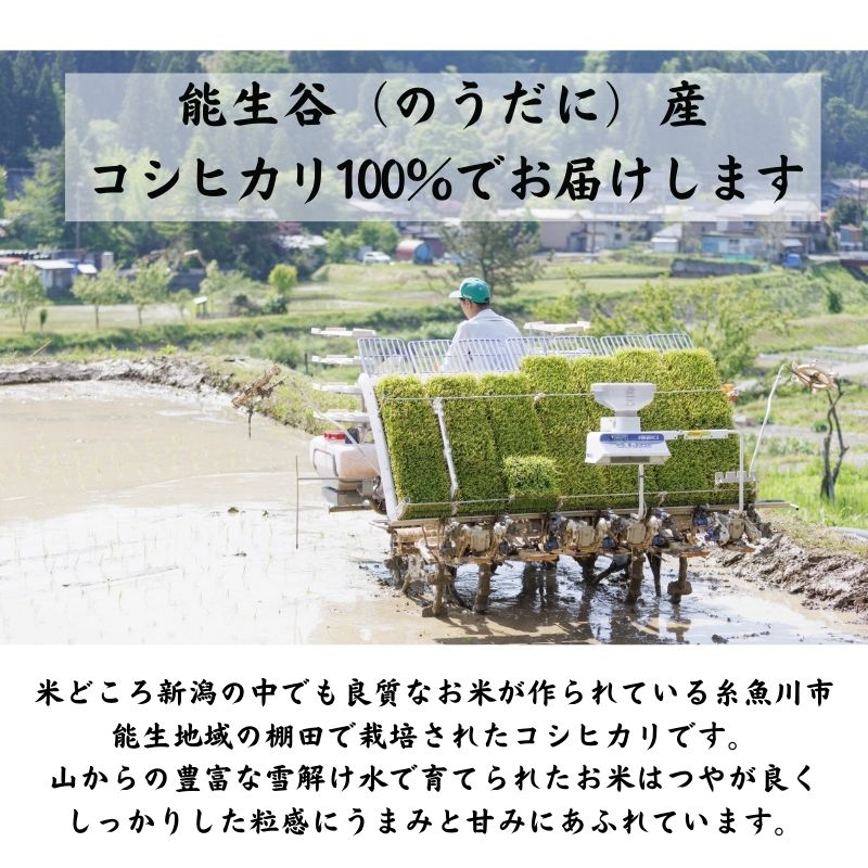 新潟コシヒカリを丹精込めて作っています 100%混入なしの新潟県産コシヒカリです。 冬には、豪雪地帯となるこの地域。厳しい代わりに、美味しいお米の元となる清流・伏流水を生み出します。 炊いてよし!冷めてよし! 香り甘みとも有名ブランド米に引けをとらない食味です。 当社が本当に愛情と責任を持って育てあげました。 絶対の自信をもって送ります。 商品概要 名称 能生谷産コシヒカリ ・・・