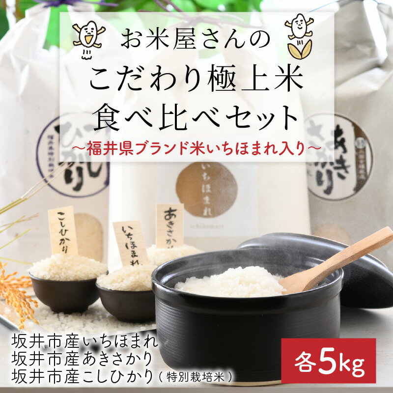 【ふるさと納税】【先行予約】【令和5年産新米】お米屋さんのこだわり極上米食べ比べセット 計15kg ~福井県ブランド米いちほまれ入り~ 【2023年10月中旬以降順次発送予定】【 無洗米 人気 品種 ブランド米 特A 】・・・