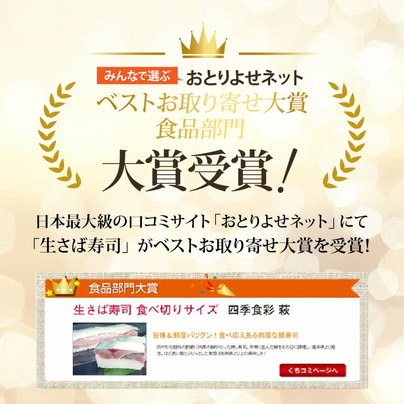 【ふるさと納税】【楽天限定】贅沢すぎる!おためしサイズ生さば寿司【お試しサイズ】/ 330g 鯖 肉厚 寿司 生鯖寿司 押し寿司 こしひかり ご褒美 おためし用 一人前 サバ 海鮮 魚貝 懐石料理 冷蔵配送 四季食彩 萩 送料無料 [A-013025]・・・