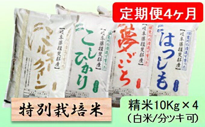 【ふるさと納税】特別栽培米★[定期便] 4カ月★毎月 精米10kg(白米/7分/5分ツキ可)【ミルキークイーン・コシヒカリ・夢ごこち・ハツシモ】 玄米は別に出品 【定期便・ お米 セット 糖質 美味しい 艶 】 お届け:2023年10月上旬〜・・・