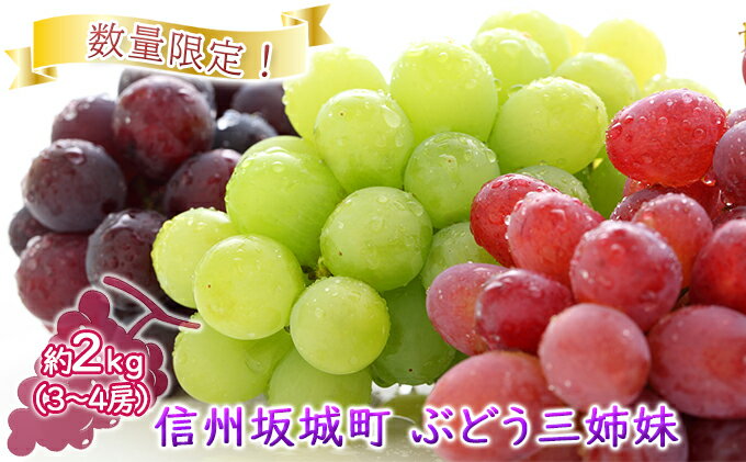 【ふるさと納税】数量限定!「ぶどう三姉妹」3種 2kg(3〜4房) ナガノパープル・ シャインマスカット・ クイーンルージュ🄬 【 果物類 フルーツ 葡萄 ブドウ デザート おやつ 食べ比べ 秋の味覚 長野県産 坂城町産 産地直送 】 お届け:2023年9月下旬〜10月初旬・・・