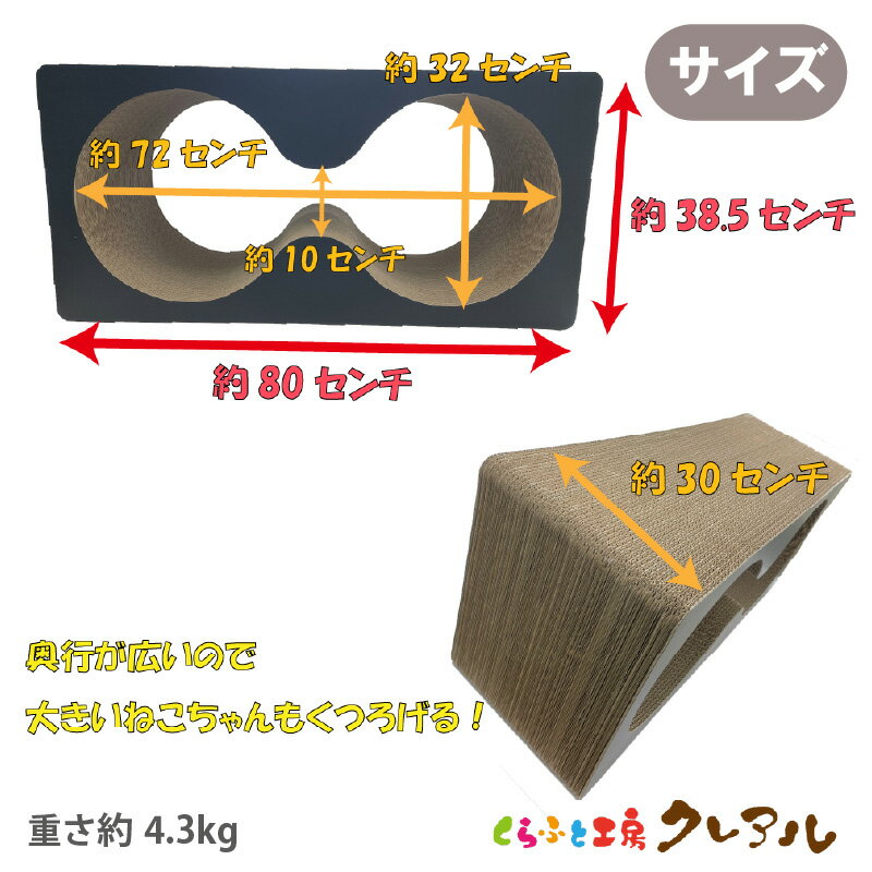 ・ふるさと納税よくある質問はこちら ・寄付申込みのキャンセル、返礼品の変更・返品はできません。あらかじめご了承ください。 ・ご要望を備考に記載頂いてもこちらでは対応いたしかねますので、何卒ご了承くださいませ。 ・寄付回数の制限は設けておりません。寄付をいただく度にお届けいたします。 商品概要 緩やかなカーブが体にフィットします! トンネル部分が広いので、大きいねこちゃんもごろーんとくつろげますよ。 国産の段ボール使用しています。重さがあるのでズレにくいです。強度のあるダンボールで作っているのでゴミが出にくいです。 配送不可地域:北海道・沖縄県 事業者 :くらふと工房クレアル 連絡先 :0569-35-5662 内容量・サイズ等 縦:約38.5センチ、横幅:約80センチ、奥行:約30センチ 重量:約4.3キロ 配送方法 常温 事業者情報 事業者名 くらふと工房クレアル 連絡先 0569-35-5662