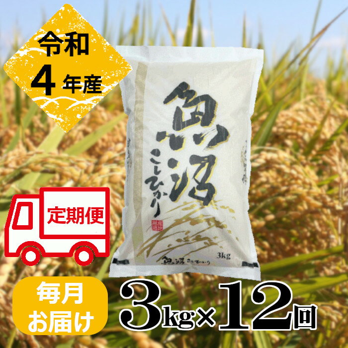 小千谷米穀 【ふるさと納税】〔定期便〕令和4年産 魚沼産コシヒカリ定期便 3kg×12回【毎月お届け】和紙製P袋(小千谷米穀)白米 3kg 新潟県 小千谷市