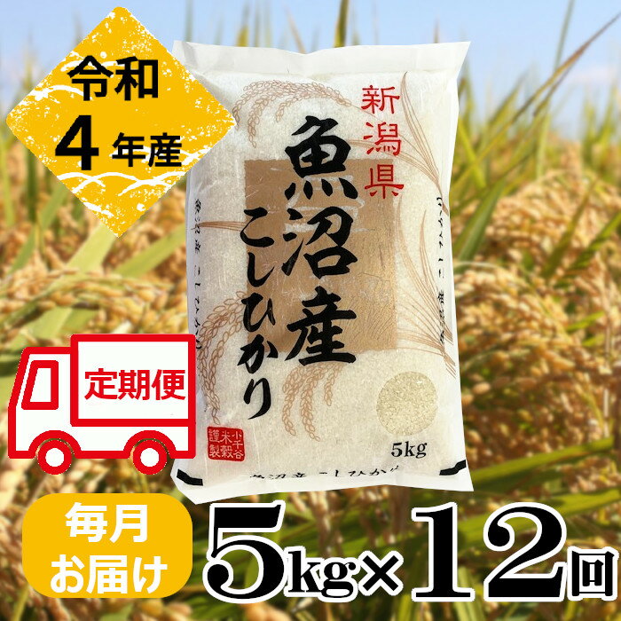 【ふるさと納税】〔定期便〕令和4年産 魚沼産コシヒカリ 定期便 5kg×12回(毎月お届け)白米 60kg 新潟県 小千谷市(小千谷米穀) r05-105-014be・・・