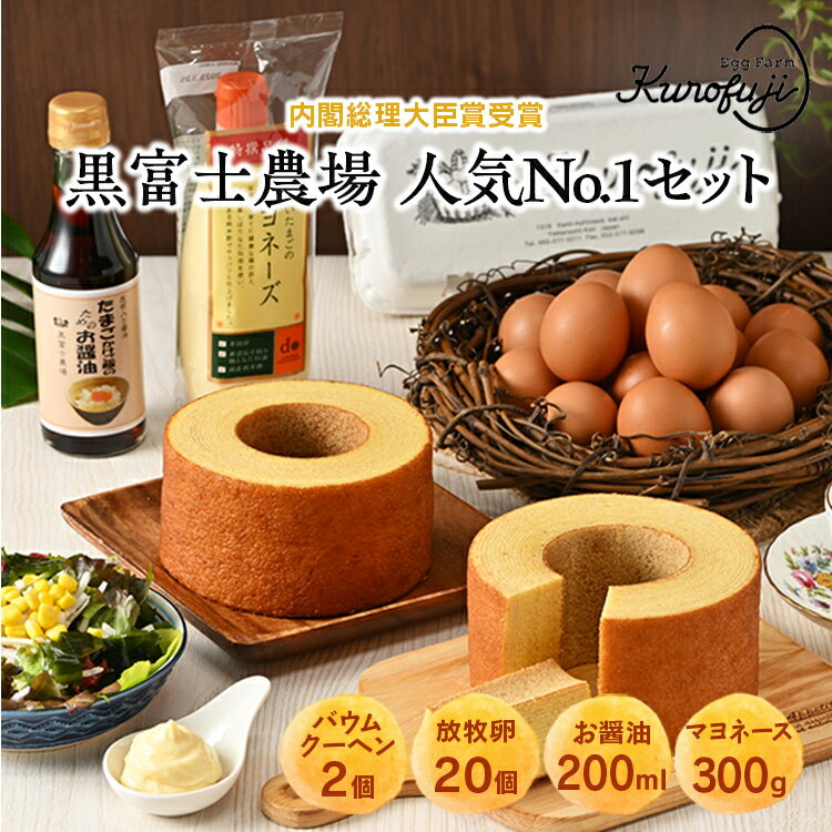 【ふるさと納税】【ふるさと納税】黒富士農場人気No.1セット (卵20個 バームクーヘン2個 マヨネーズ お醤油)☆平成26年度内閣総理大臣賞受賞☆ 生卵 平飼い 食べ比べ ギフト 甲斐B-2 山梨県 甲斐市 【 鶏卵 スイーツ おやつ 焼き菓子 調味料 詰め合わせ 】・・・