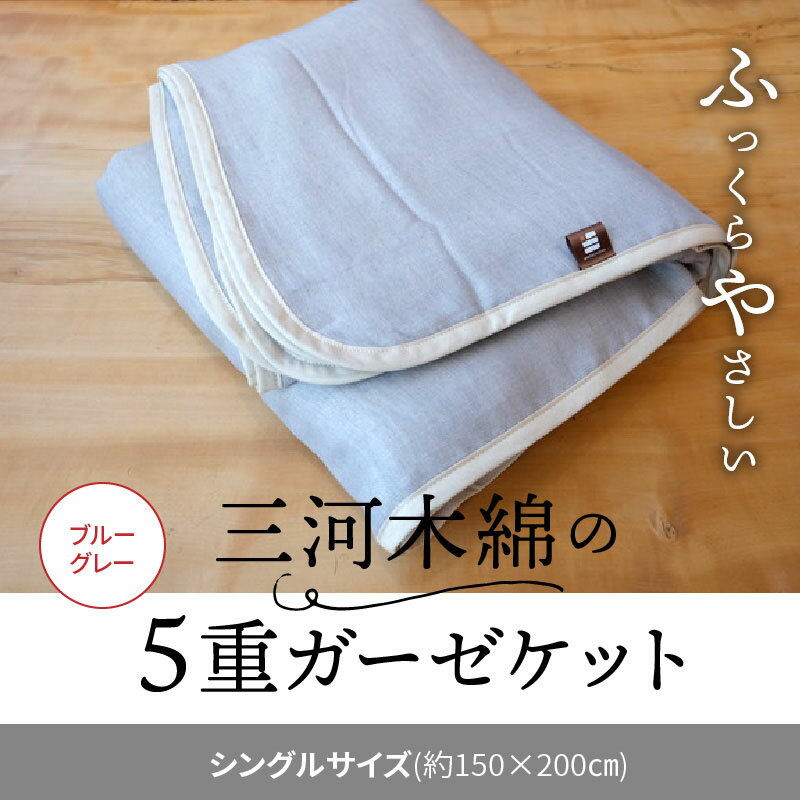 【ふるさと納税】ふっくらやさしい三河木綿の5重ガーゼケット(シングルサイズ:ブルーグレー)