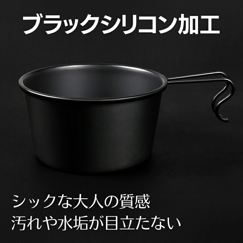 《 商品の説明 》 大人キャンパーのための一生モノのギア マットブラックな質感がかっこ良い 「おとなの黒シェラカップ」 【 「おとなの黒シェラカップ」4つの特徴】 1.マットな質感のブラックシリコン加工 2.ハイエンドな素材18-8ステンレスを使用 3.大容量600ml 4.信頼のメイドインジャパン(新潟県燕市製) 【マットな質感のブラックシリコン加工】 ブラックシリコン加工が・・・