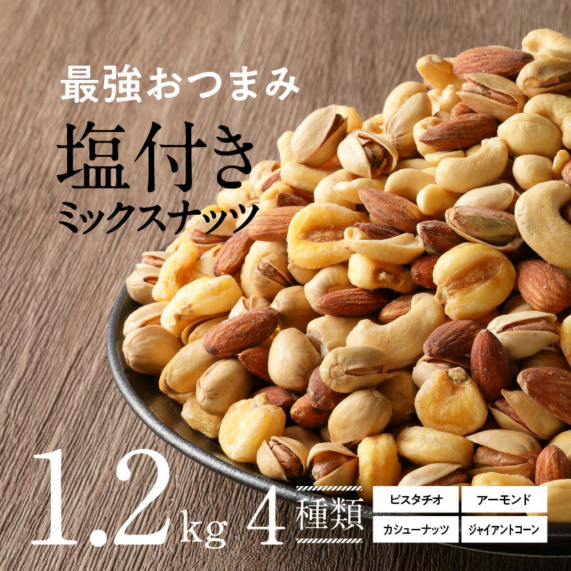 【ふるさと納税】絶妙な塩味がクセになる ミックスナッツ 1.2kg シュクレナッツ sucre nuts ナッツ ミックス おつまみ 塩付 チャック付き 保存 便利 使い勝手 アーモンド ピスタチオ カシューナッツ ジャイアントコーン おやつ 晩酌 お取り寄せ 送料無料・・・
