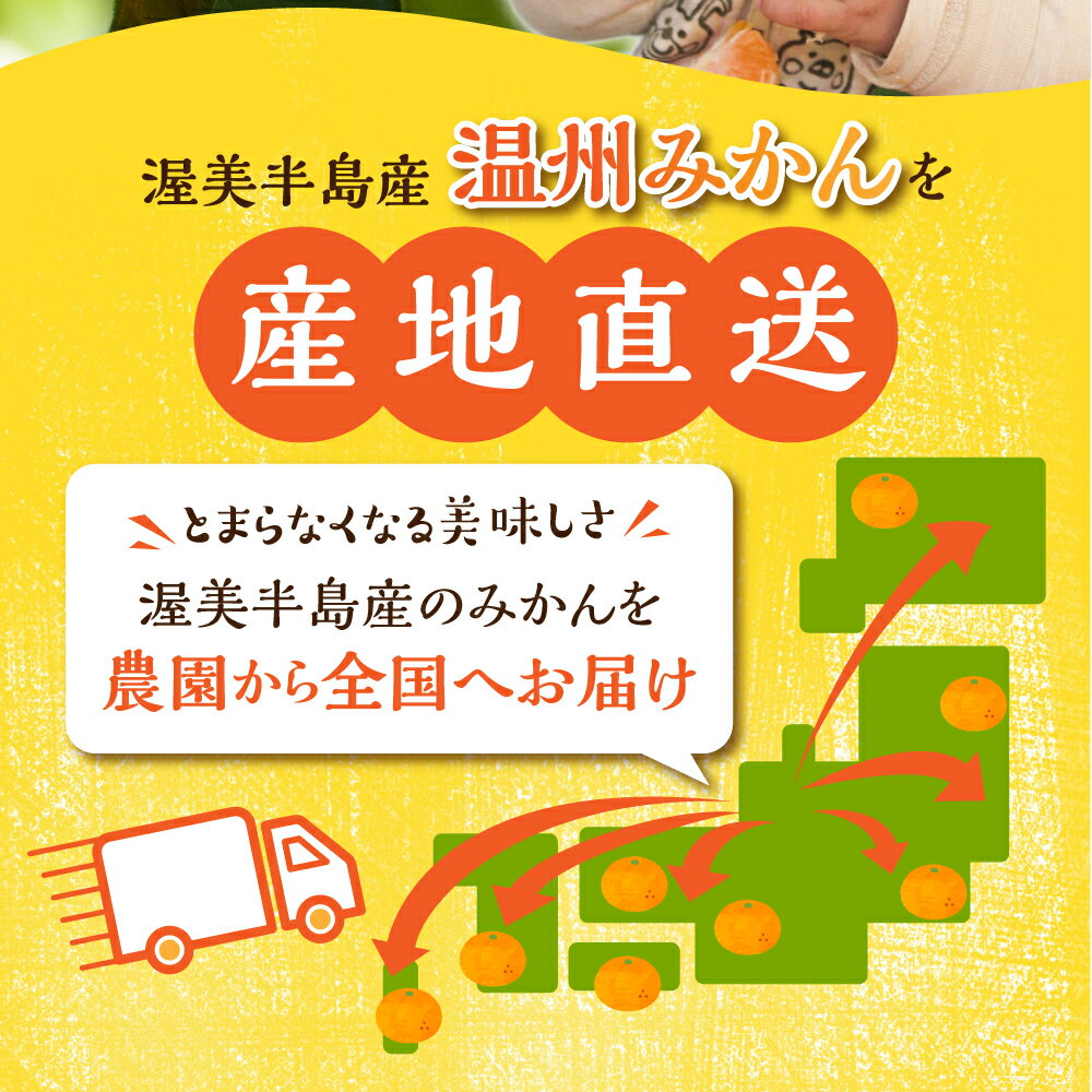 【年内お届けについて】 申込期間:2023年12月25日(月)まで 上記期間までに決済完了で12月20日〜31日の間に返礼品をお届けいたします。 ※年内お届けをご希望の場合は商品詳細にて【年末(12月20日〜31日)お届け】をご選択ください。 ※原則、決済方法を即時決済ご選択の方が対象です。 ※銀行振込・郵便振替・FAXでのお申し込みなど、決済完了の確認にお時間をいただく決済方法の場合、申込期間内の寄付でも年内お届け対象外になる場合がございます。 年内お届け希望の場合は、クレジットカード決済などの即時決済にてお申込み下さい。 ※下記理由により、ご指定日・年内お届けができない場合がございます。予めご了承ください。 ・年末年始の輸送需要増加による物量増加のため。 ・大雪や荒天の影響による、高速道路等の交通規制や荷受け停止・配送遅延がある場合。 ※沖縄、離島など一部、配送不可のエリアがございます※ 甘みと酸味が絶妙なバランス。地元で「おいしい」と評判のみかんをお召し上がりください。「ご家庭用」みかんは表面にキズや形にばらつきがあったりする果実を含みますが、味は全く問題なく美味しく食べられるのが「ご家庭用」みかんの特長です。ご自宅用にたくさん食べたい方にピッタリです。また親しい方への贈り物としても喜ばれます。日の当たらない風通しの良い涼しい場所で保管してください。一玉一玉手選果で大切に箱詰
