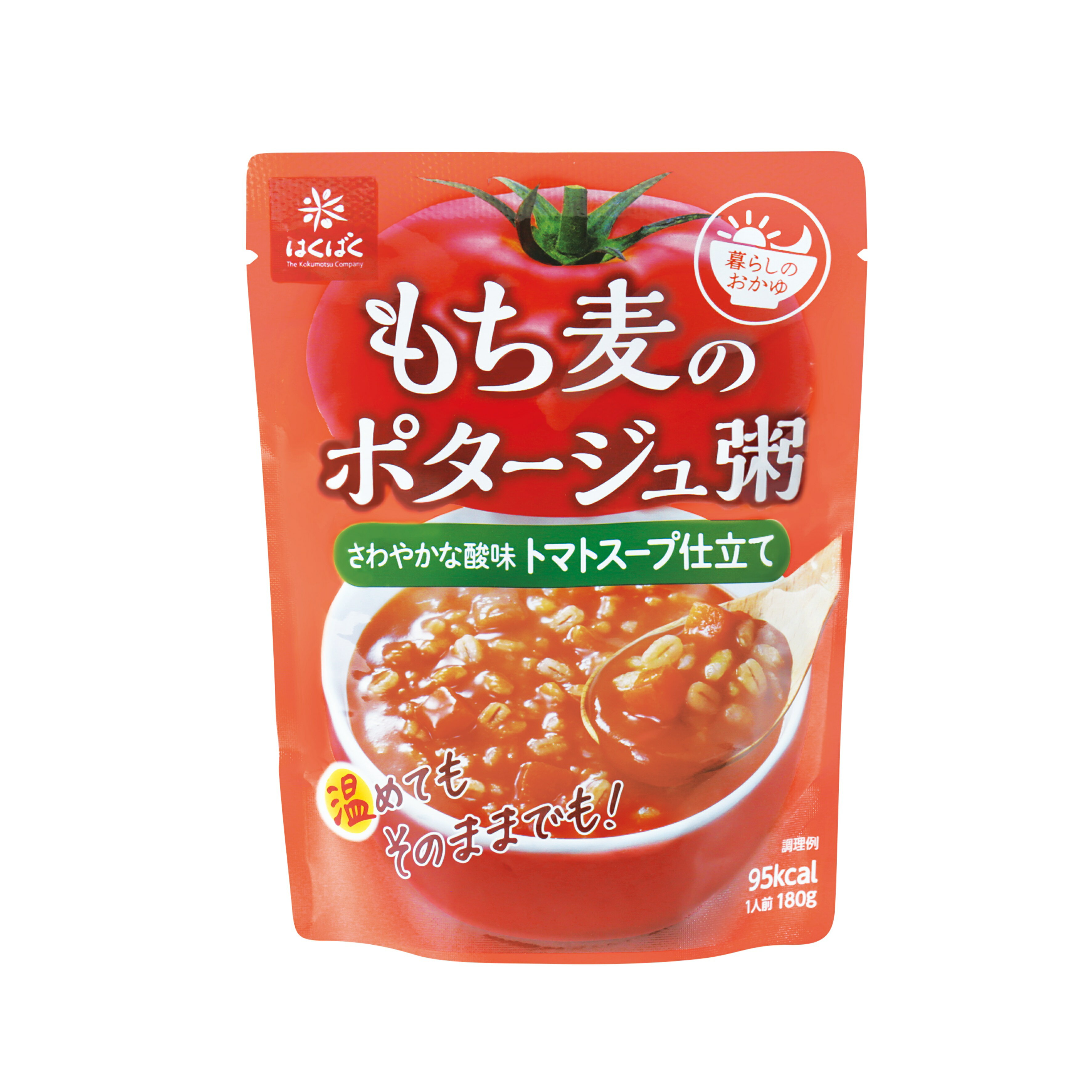 〜もち麦の満足感と素材の味を楽しめる野菜仕立てのポタージュ粥〜 暮らしのおかゆシリーズ 温めても、そのままでもおいしくお召し上がりいただける、野菜仕立てのもち麦のポタージュ粥です。 おかゆ市場はシニア層の食事だけでなく、防災・備蓄需要やヘルシー志向の後押しもあり、女性からも人気を集めています。 穀物の健康価値と、おかゆのからだを温める"温活"でからだとこころを温めて、元気な毎日をお届けします。 【特徴】 ・もち麦を使用したおかゆで、野菜の栄養も一緒にとれるのに低カロリーで健康的です。 ・野菜仕立てのポタージュとおかゆのやさしい味わいにもち麦の食感で、1袋で満足感があります。 ・冷やしてもそのまま常温で食べてもおいしい。温めたりの調理が不要な簡便食です。 ・忙しい日の朝食、仕事の合間の昼食、育児中の昼食、間食に・・・シーンに縛られず簡単に食べられます。 ■生産者の声 からだをいたわって“日常の食事”でおかゆを食べてほしいという想いを込めて開発した「暮らしのおかゆ」シリーズ。ポタージュの「とろみ」と、おかゆの「とろみ」を組み合わせて、さらっとスープ感覚で食べられるおかゆに仕上げました。トマトと相性の良い粉末チーズ・バター・クリームを使用し、コクのあるさわやかな味わいです。温めてもそのままでも召し上がりいただけます。非常用に備えても!日々の食事でも!ローリングストックに適した商品です。