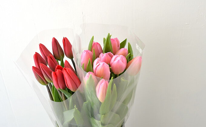 【ふるさと納税】フラワーファームしろねのチューリップ切花20本(赤・ピンク 各10本) 【植物・花束】 お届け:2023年12月中旬~2024年3月下旬・・・