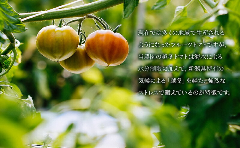 名称トマト内容量越冬フルーツトマト 350g~500g(一玉40g~60g、目安玉数6玉~12玉)新潟市北区SOGA FARM産 内箱クラフトBOX 外箱ダンボール 産地新潟県新潟市事業者株式会社曽我農園配送方法冷蔵配送お届け時期2024年6月上旬~6月下旬備考※画像はイメージです。 ※色が薄い場合は、常温で保管して赤くしてからお召し上がりください。 ・ふるさと納税よくある質問・・・