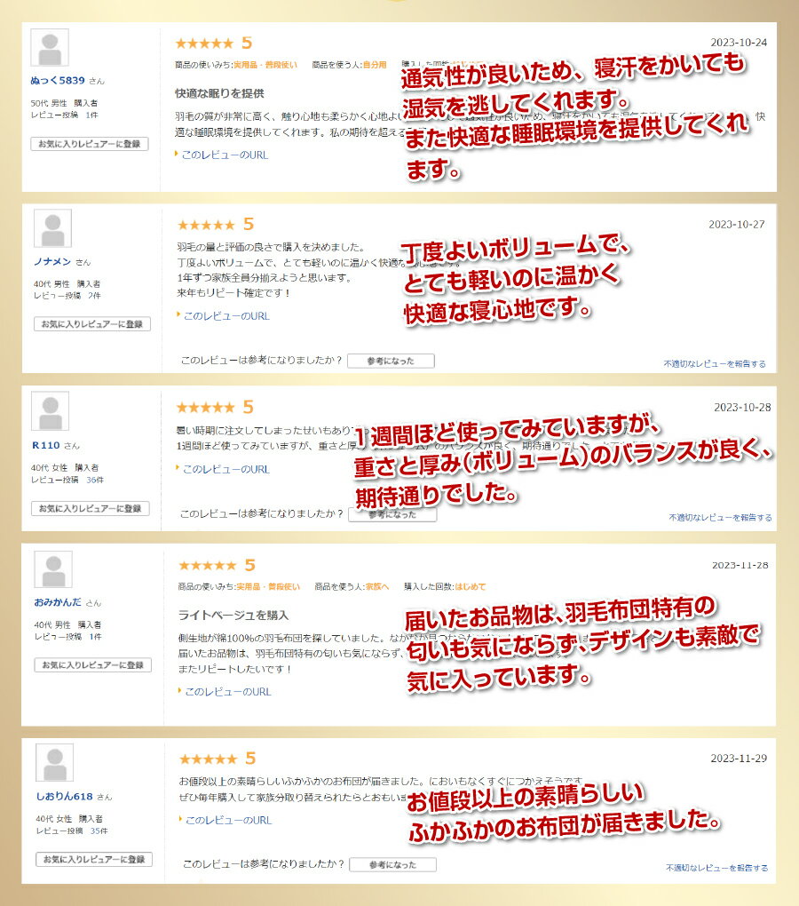 清潔設計!取り扱いの便利な中厚タイプの羽毛布団です。