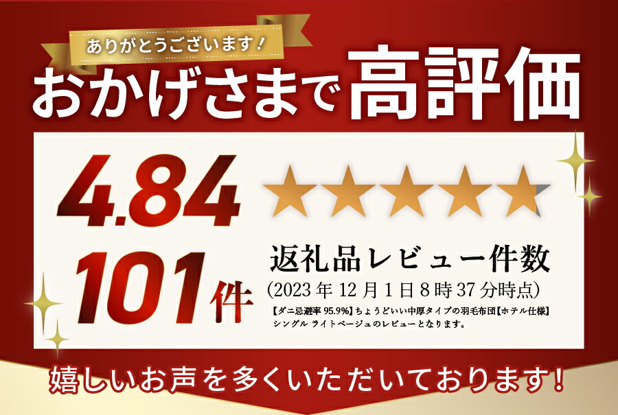 【ふるさと納税】 羽毛布団 掛け布団 中厚 シングル 日本製 ライトベージュ【ダニ忌避率95.9%】 【ホテル仕様】 綿100% サテン ストライプ 抗菌 防臭 防ダニ 寝具 布団 国産・・・