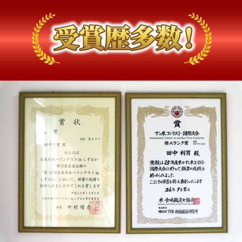第10回 あなたが選ぶ日本一おいしい米コンテスト 金賞受賞(平成28年11月) 第4回 大阪府民の”いっちゃんうまい”米コンテスト 部門最優秀賞受賞(平成27年) 第11回 お米日本一コンテストinしずおか 金賞受賞(平成30年12月) すし米コンテスト・国際大会 特Aランク賞受賞(平成26年9月) 減農薬・減化学肥料に加え、乳酸菌を使って栽培したコシヒカリです。 乳酸菌を培養・・・