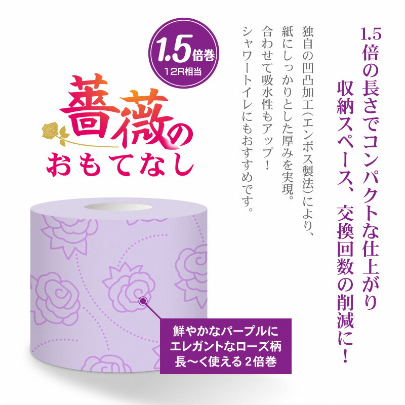 【ふるさと納税】薔薇のおもてなし 1.5倍巻 ダブル パープル 香り付き 96個【144ロール相当】 トイレットペーパー 超吸水 ふんわり 肌にはりつきにくい 再生紙 リサイクル まとめ買い 日用品 生活用品 消耗品 備蓄品 トイレ用品 大容量 SDGs 春日製紙 静岡 富士市(1670)・・・