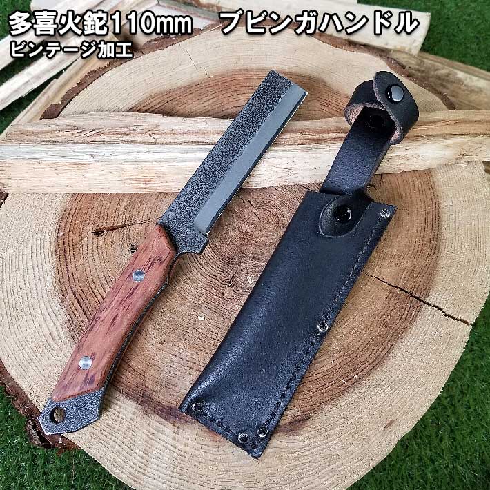 【ふるさと納税】[BABACHO] 薪割りに 多喜火鉈・ブビンガ ビンテージ風 (コンパクト鉈) 110mm 革ケース付 キャンプ用品 アウトドア用品 三条市 燕三条製【033S004】・・・
