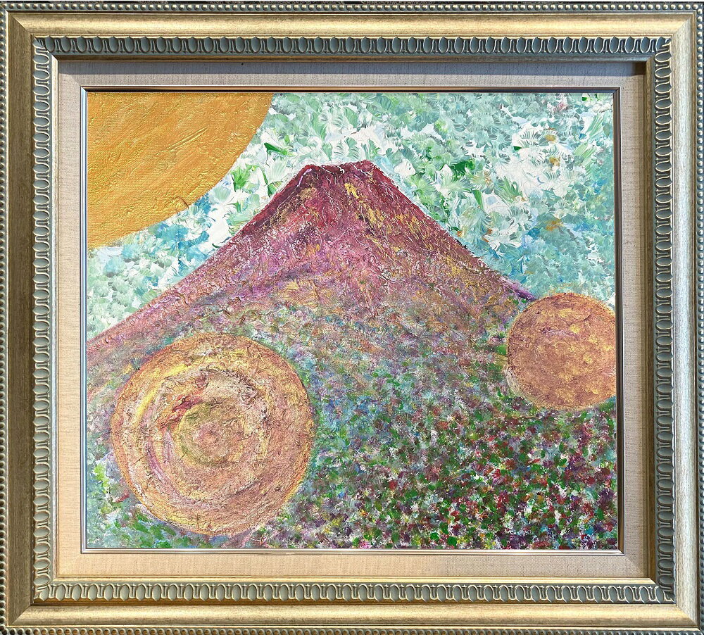 溶岩を絵画一面贅沢に使用した新ジャンルのパワーアート 溶岩微粒子パウダーと細粒まで粉砕した溶岩画材(独自開発)を絵具に練り込み描いた絵画です。 富士吉田市出身の溶岩アーティスト佐藤俊明が2008年から考案、制作した作品です。 富士吉田市から見た霊峰富士溶岩パワーアートです。 〜生産者の声〜 世界遺産富士山の麓の町である富士吉田市は昔から溶岩の豊富な街として親しまれています。 そ・・・