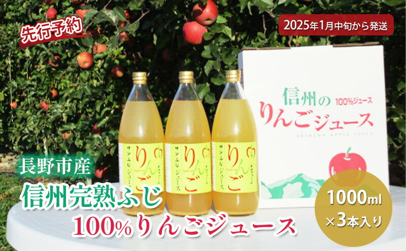 【ふるさと納税】先行予約 長野市産信州完熟ふじ100%りんごジュース1000ml×3本入り 2024年発送 【 果汁飲料 アップルジュース 甘味 酸味 スッキリ のどごし 果汁100% ストレート 皮ごと 丸ごと 】 お届け:2024年1月中旬~9月下旬・・・