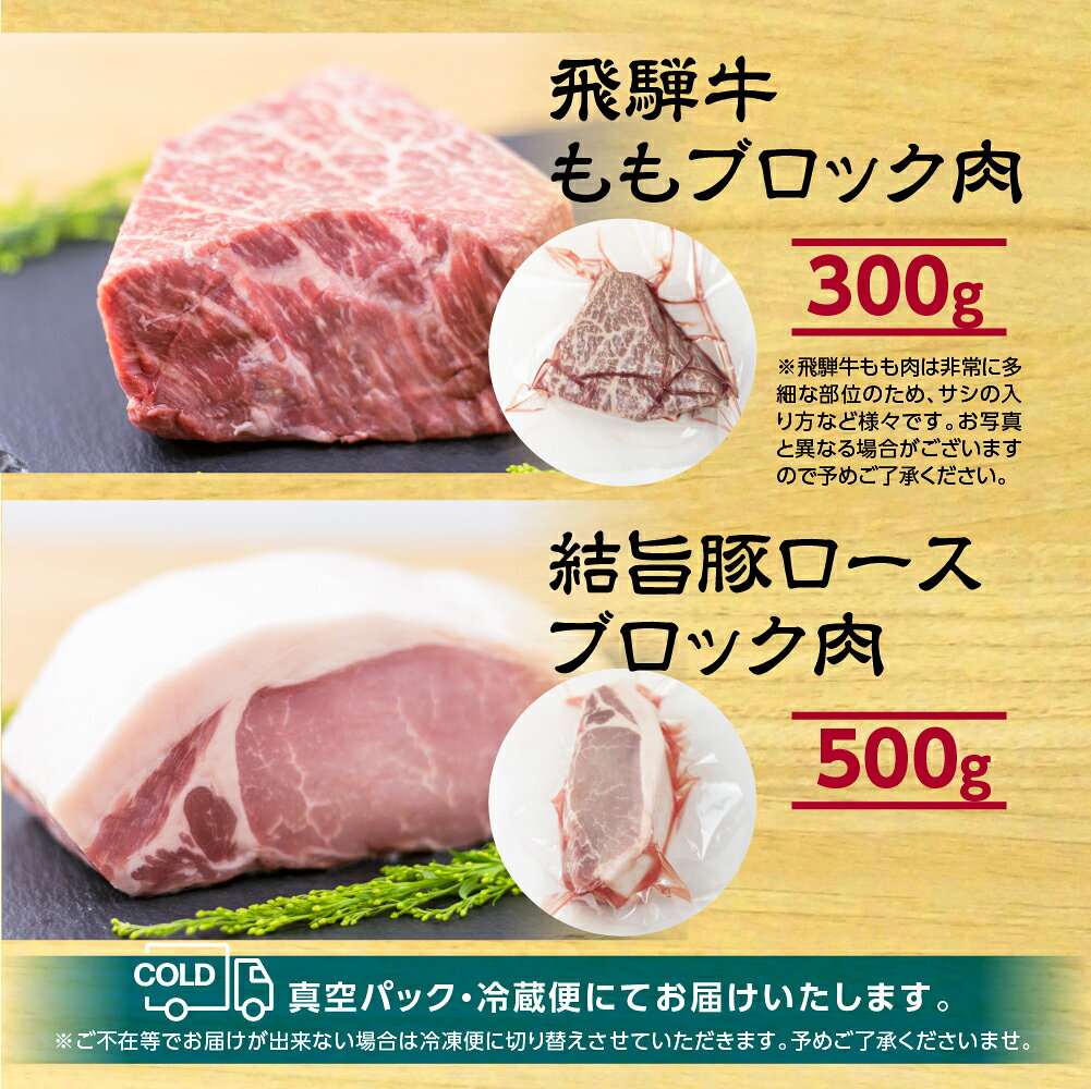 【ふるさと納税】ブロック肉 食べ比べ 計 800g 飛騨牛ももブロック肉 300g 結旨豚 ロースブロック肉 500gセット ローストビーフ ステーキ 肉 牛肉 国産牛 豚肉 国産 A4 A5 等級 もも モモ肉 白川郷 焼肉 焼き肉 BBQ キャンプ てんから 簡易梱包 訳あり 訳アリ 20000円 [S321]・・・