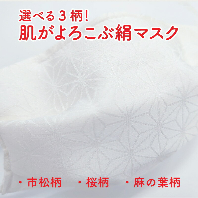 【商品説明をよくお読みいただき、ご寄附下さい。】 ■高密度織りにより、至高の手触りを実現。 小杉織物が厳選した絹糸を使用することで、絹の光沢感を最大限に引き出し、肌ざわりが格段にアップ。さらにあなたの肌をやさしく、ふんわり包み込みます。耳掛け部分には、当社で織っている幅広ソフトゴムを使っているので、耳が痛くなりにくいです。 ■小杉織物がこれからの季節にマッチした「高密度織り」を採用。 暑さが残る季節から、肌寒い季節まで、季節の変わり目・冬場でも安心快適の織りかたを考案。シルクの生地の模様はおなじみ市松柄に、日本古来の和柄である麻の葉、桜柄の3種類から選べます。内側には十字縫いを施し、息を吸う際の貼り付きを軽減。また、多重構造と不織布フィルター入り。 ノーズワイヤーも入っているので、鼻にフィットします。耳掛け部分には、当社で織っているソフトゴムを使っております。 ■毎日身に付けるものだから。お肌にやさしいシルク100%使用 絹は、肌にやさしい健やかな天然素材です。セリシンなどを含む絹の成分は人の皮膚に近いとされており、身につけるだけでお肌がしっとり潤います。 実際、「マスクあれ」とも呼ばれる不織布マスクなどによる肌あれに悩まされた人が、皮膚科の専門医から当社の絹マスクをすすめられたケースもあるほどです。 お肌が弱い方やアトピーの方など、毎日マスクをつけられる方に、特におすすめで