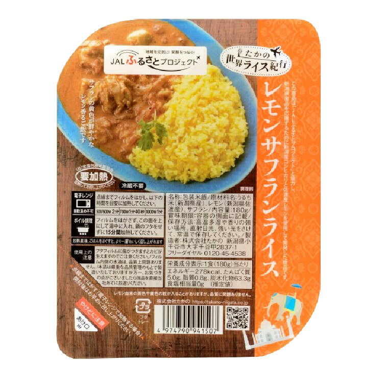新潟産コシヒカリと佐渡産レモンを使用 新潟県産コシヒカリ ブランド米 レトルトご飯 レトルトごはん パックご飯 パックごはん キャンプ JALふるさとプロジェクト サフランライス
