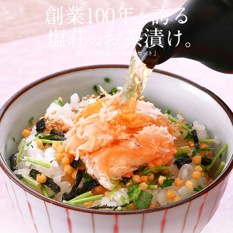 蟹、鮭、鯛、サワラ、穴子を使った、こだわりお茶漬けセットです。 福井の地魚を中心に自社加工したこだわりの「お茶漬けセット」になります。 具材が全部で5種類入っていて、1袋毎にダシ、かやくが1セットになっております。具材として、紅ズワイ蟹、ふくいサーモン、福井真鯛、福井さわら、煮穴子を贅沢に自社加工して使用しております。地元の市場より仕入れた鮮魚を熟練の職人が捌いてからの加工になるので、よくある、具材を仕入れただけの加工品では出せない味の深みや素材の旨味を味わえる贅沢なお茶漬けセットとなっております。 具材のこだわりとしては、まず1品目が甘味が強い国産の「紅ズワイ蟹」の身を使った「蟹茶漬け」となります。 紅ズワイ蟹の身を丁寧にほぐし特製のタレと絡めてより深い味わいに仕上げたお茶漬けになっております。こちらは付属のダシと一緒に炊き込みご飯や混ぜご飯にしても美味しくお召し上がり頂けます。 2品目が地元福井のブランド魚「ふくいサーモン」を使用した「鮭茶漬け」になります。 程よく上品な脂乗りと芳醇な旨味がお楽しみ頂ける逸品です。自社加工で切り分けているので、身が厚く贅沢なお茶漬けとなっており、福井サーモンの旨味がしっかり表現されています。 3品目は、敦賀で水揚げされた「敦賀真鯛」を使った「鯛茶漬け」になります。 身が程よく厚く、脂乗りも抜群な真鯛を使用しております。白身魚の特有の生臭さを消し