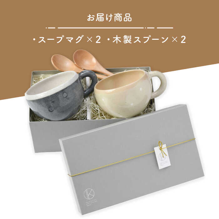 【ふるさと納税】【美濃焼】 ネージュ・スープスプーンペアギフト カフェラテ&ミルク(k-ai)【cierto】食器 スープマグ ペア [MCD157]