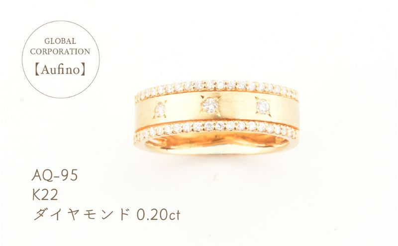 内容K22製 ダイヤ0.20ct事業者甲斐燦々備考※画像はイメージです。 ※備考欄にサイズのご希望をご記入ください。 リングサイズは#9~#17号でお選びください。(サイズは0.5刻みでのご注文可) ※ジュエリーケースに入れてお届けいたします。 ※ご注文頂いてからの製造になります。お届けまでに2ヶ月ほどお時間を頂きます。ご了承くださいますようお願い致します。 ・ふるさと納税よくある質問はこちら ・寄附申込みのキャンセル、返礼品の変更・返品はできません。あらかじめご了承ください。【ふるさと納税】K22製 ダイヤモンド リング SJ-112(AQ-95)指輪 ゴールド 22金 純金 【 アクセサリー ジュエリー 装飾品 ファッション小物 小物 ファッションアイテム おしゃれ 装飾品 】 Aufinoアウフィーノ 純金に限りなく近い金の含有量91.7%の高品位地金【K22】 22金という高品位地金を特別に使用したリングです。 金の含有量91.7%と18金に比べて割合が高いため、大変加工の難しい素材であり、国内でも取り扱いが少ない貴重な素材です。 22金特有の黄金色は人を魅了する特別な色です。 1988年に設立されたグローバルコーポレーションは、ジュエリーの原材料の調達から製品の検品検査・出荷までを一貫して自社で行う数少ないジュエリーメーカーです。本社が位置する山梨県は、ジュエリー製作に