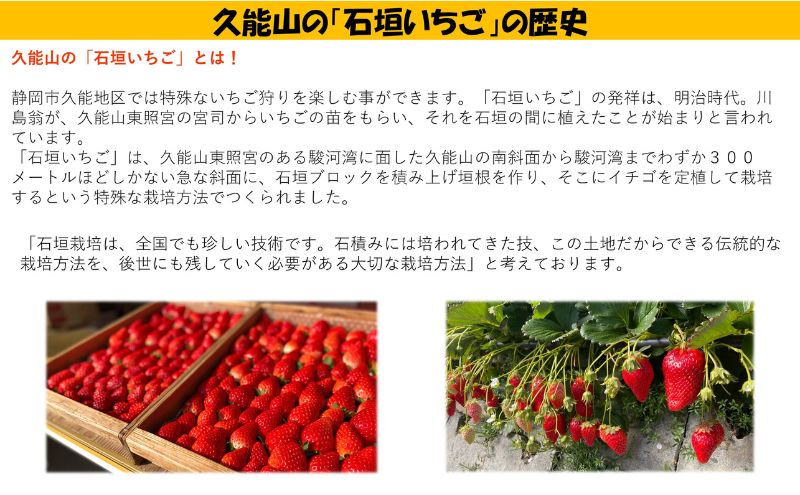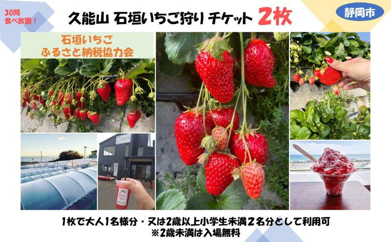 【ふるさと納税】久能山 石垣いちご狩り チケット 2枚(1枚で大人1名様分、又は小学生未満2名分として利用可、2歳未満は入場無料)食べ放題 30分 体験 苺 イチゴ 観光 静岡市 【 体験チケット 】 お届け:2023年11月上旬~2024年3月中旬・・・