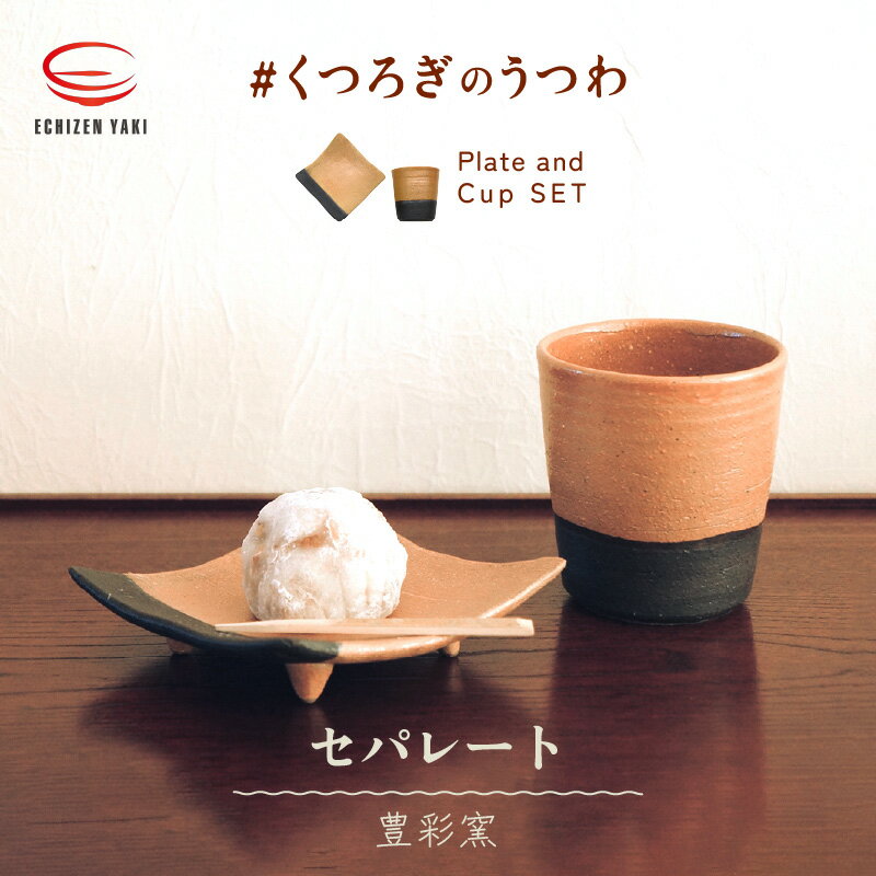 【ふるさと納税】【越前焼】豊彩窯 セパレート お皿とカップ「くつろぎのうつわ」【福井県 伝統工芸品 さら マグカップ おしゃれ コップ 陶器 陶磁器 湯呑み 小皿】 [e25-a010]・・・